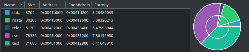 Look how high the entropy of .rsrc section is. Remember that the highest possible entropy value is 8.0. No doubt, we have an interesting data in this section. We’ll get to that later in the 2nd part of this series.